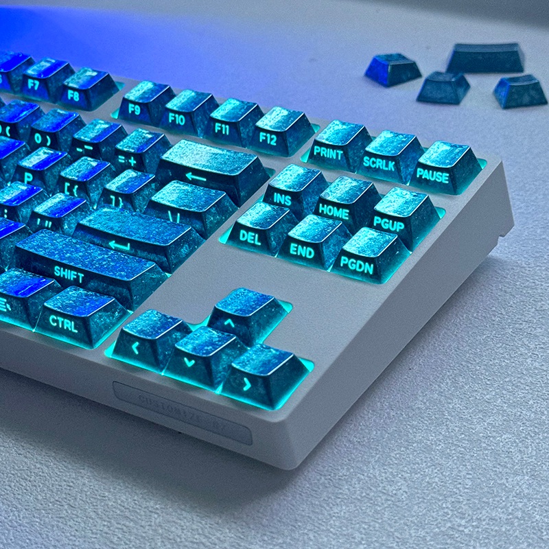 Product Name | Frost Blue Metal Feature 87+10 Keys PBT Doubleshot Side Legends Keycaps Set Cherry Profile for Cherry MX Keyboard |